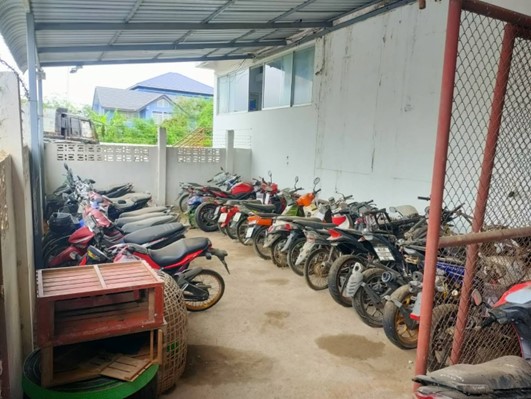 1.1 เจ้าหน้าที่ได้ดำเนินการกวาด ล้าง และจัดระเบียบสถานที่เก็บรักษารถจักรยานยนต์ของกลางให้มีความสะอาดเรียบร้อย