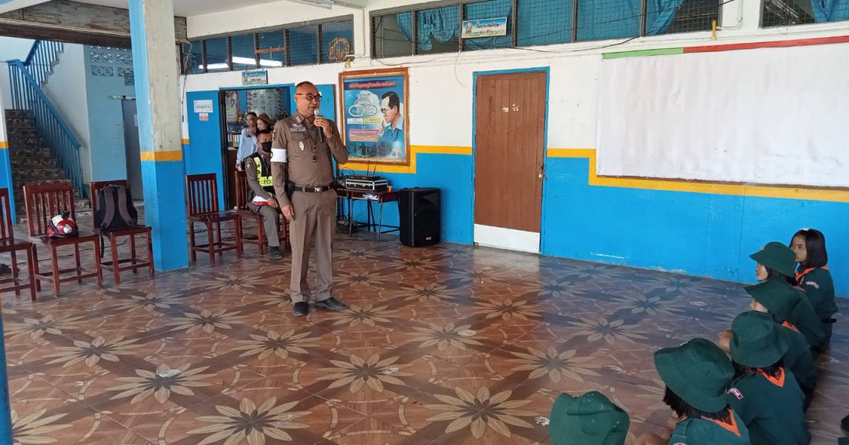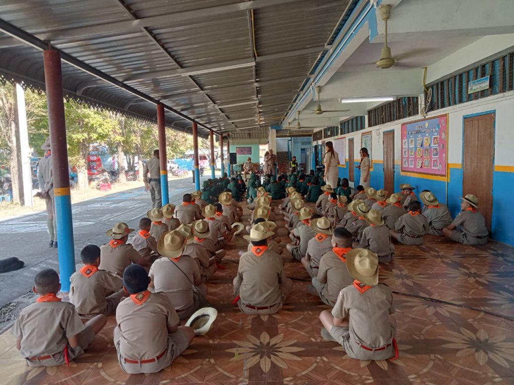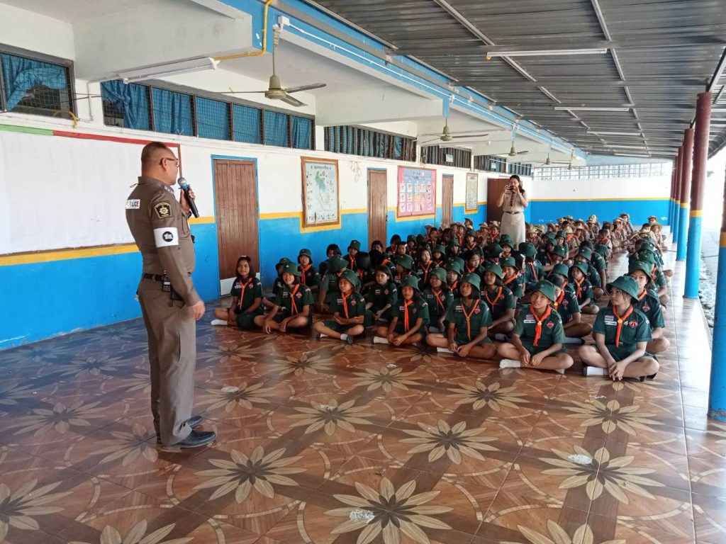 ร.ต.อ.กิตติศักดิ์ เนื่องวงษา รอง สวป.สภ.ภูเขียว พร้อมด้วยเจ้าหน้าที่ตำรวจจราจร สภ.ภูเขียว เป็นวิทยากร ให้ความรู้เกี่ยวกับกฎหมายจราจร แก่คณะครู และลูกเสือเนตรนารี