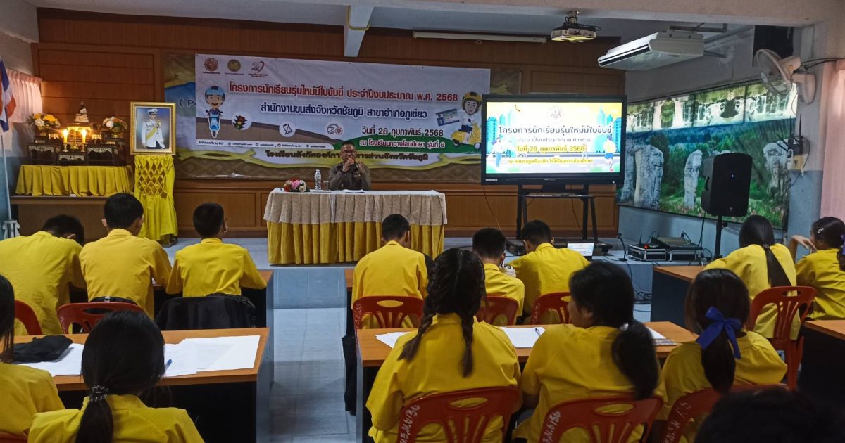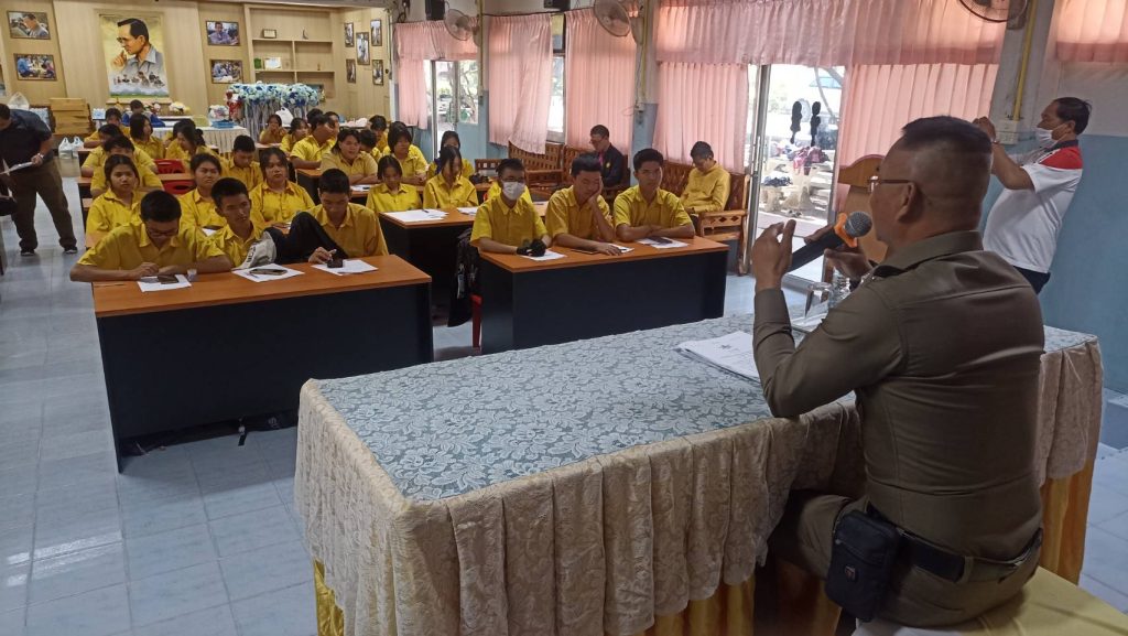 ร.ต.อ.พิเชษฐ์ แสงชาลี รอง. สว.จร.สภ.ภูเขียว ได้เป็นวิทยากรบรรยายให้ความรู้เกี่ยวกับกฏหมายจราจร