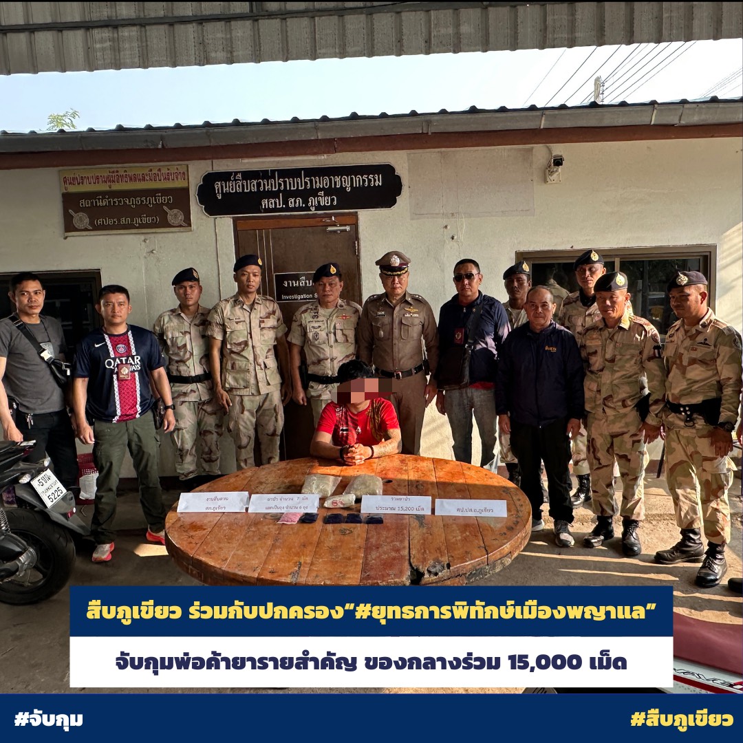 พ.ต.ต.กฤษฎา ป้องปาน สว.สส.ฯ พร้อมด้วยเจ้าหน้าที่ตำรวจชุดสืบสวน สภ.ภูเขียว ร่วมกับเจ้าหน้าที่ฝ่ายปกครองอำเภอภูเขียว จับกุมผู้ต้องหายาเสพติด